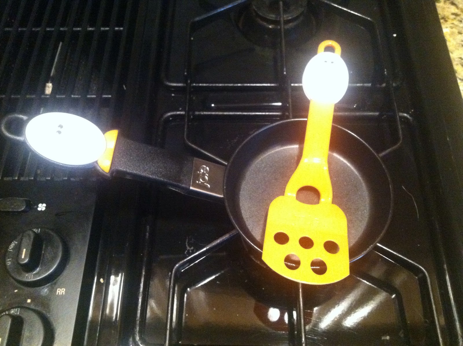 We use a little baby pan my mom bought me for Christmas to make eggs in. Put cheese on top and you have a great breakfast sandwich for cheap!