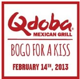 Today only you can get buy one get one entree free when you share a kiss at Qdoba. This is good February 14th only. See the details over here on their Facebook page.