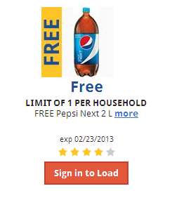 Today only you can load a coupon for free Pepsi Next 2-liter at Kroger. This coupon is good until 2/23/13 however it does have to be loaded today.