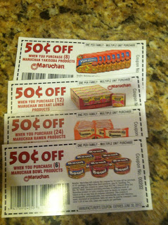 My son loves Maruchan Noodles. His very favorite is the shrimp ramon. He would eat it every night if I let him. I had been buying the Maruchan Yakisoba with the $.50 off coupons. I buy the coupons on ebay and then Kroger usually has a deal where I get them for almost free. They are great for quick lunches. I had noticed that we hadn’t gotten any in the coupon inserts recently. I wrote to the company hoping to score some good coupons. Today I got a letter from the company. I was so excited, until I saw the coupons. One was for $.50 off 24. Yes that is right, 24!! So, what is the most ridiculous coupon you have ever gotten or used?