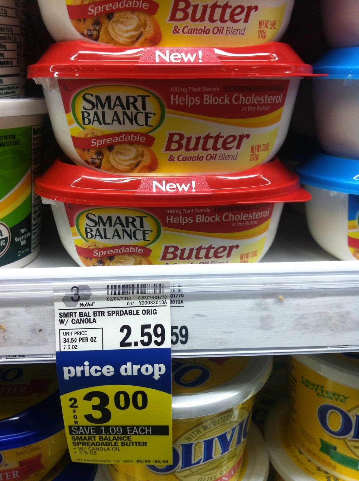 I found some good unadvertised Meijer deals today. They have their Smart Balance Butter marked down to $1.50. You can use the $1.25/1 print to the butter for only $.25.
