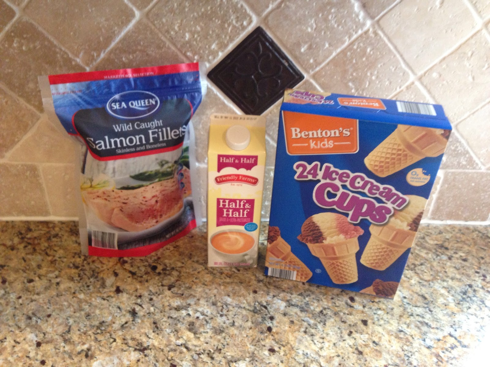 I went to Aldi Sunday afternoon on the way home from the Dollar Tree. I wanted to get Corned Beef Tips for Saint Patrick’s Day, but they were all out. So instead I picked up salmon. I love Aldi’s salmon. They are Wild Caught, which are healthier for you and they individually wrap each salmon. That way they stay fresh even if you don’t use the whole bag the first time. They are also quick to defrost this way, I just throw them in a bowl of water.