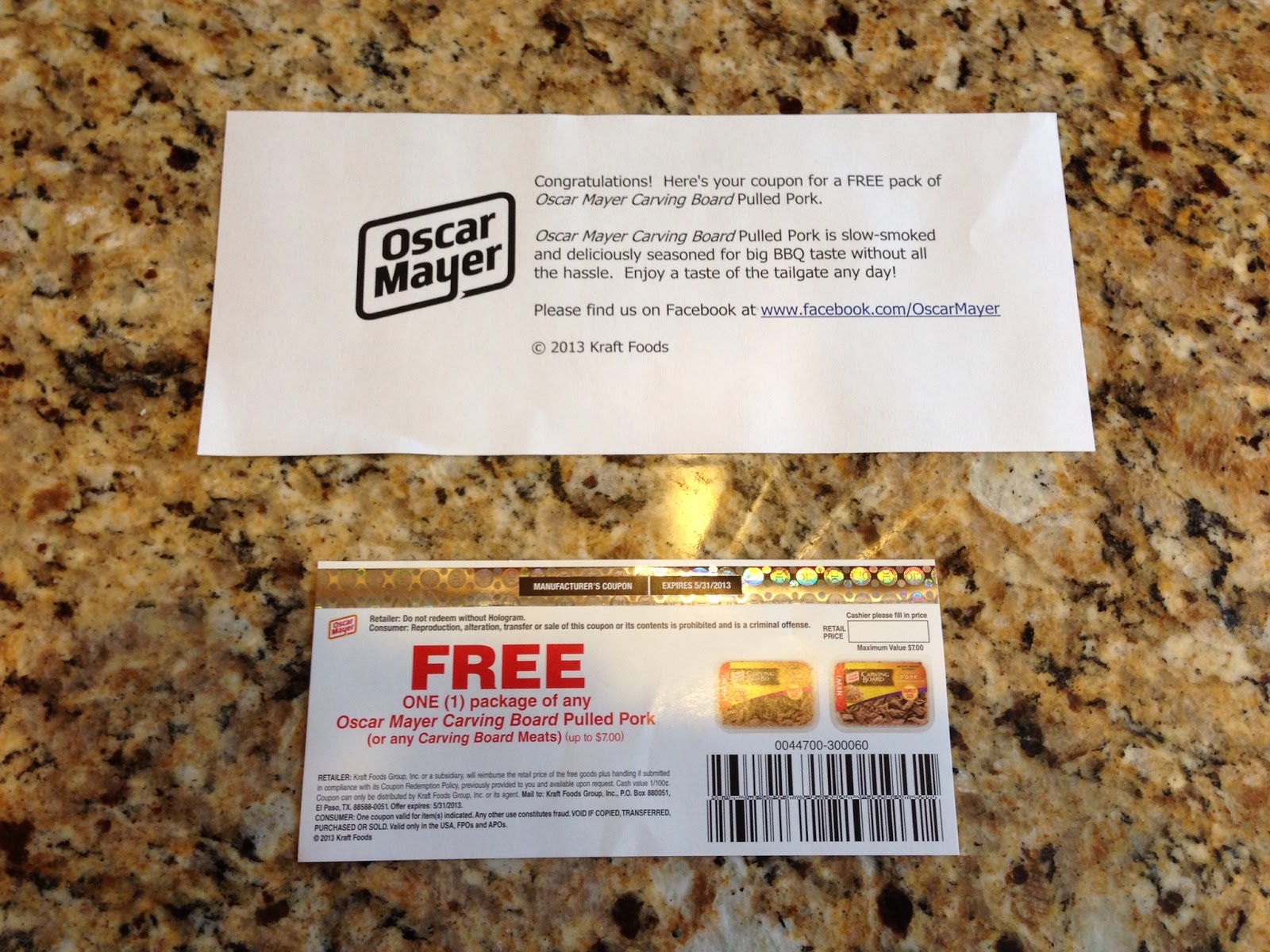 Did you get your free coupon for Oscar Mayer Carving Board Pulled Pork in the mail. I was so excited to get it last night. Hopefully if you did the Oscar Mayer Taste-monial it should be coming soon. Free is my favorite price!