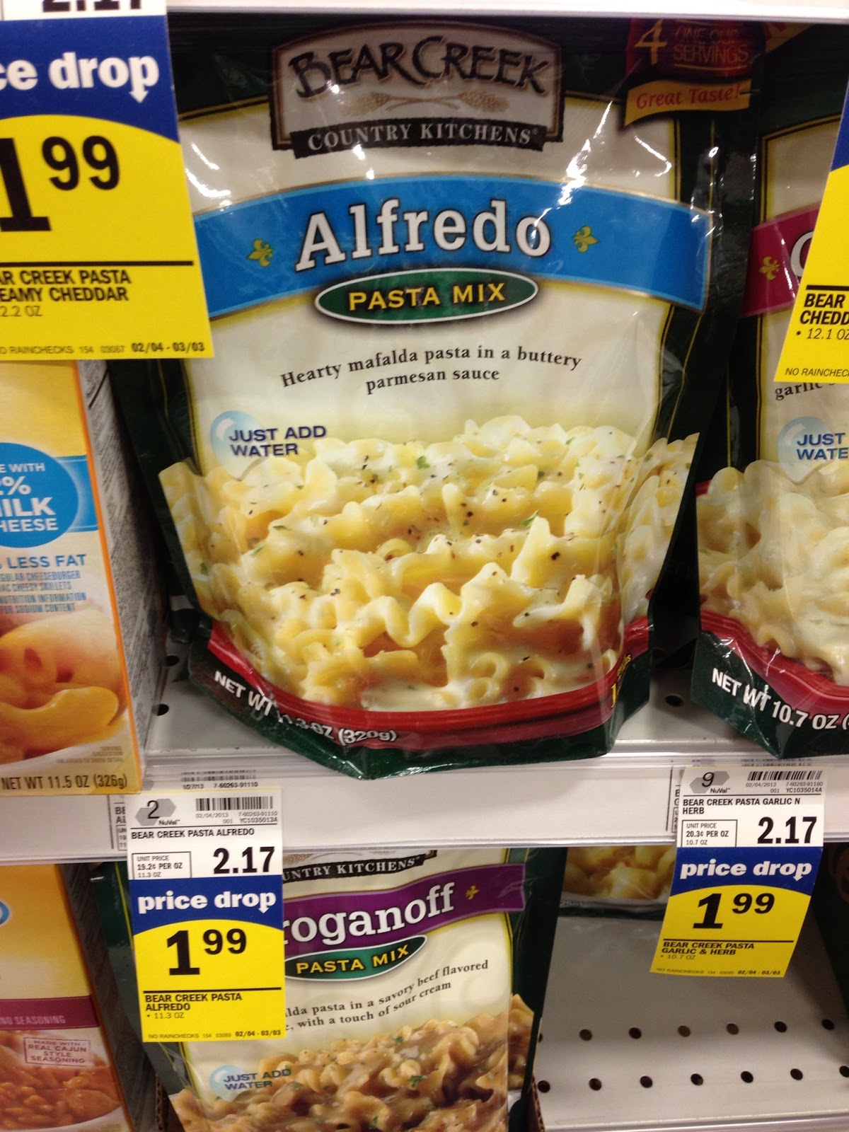 The Bear Creek Pasta’s are on sale this week for $1.99. You can use the $1/1 Bear Creek Pasta Mix, exp. 4/14/13 (SS 10/14/12) to pick it up for only $.99 each.