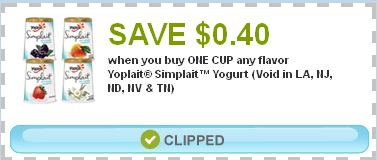 Meijer will have Yoplait on sale for $.50 starting Thursday. You can print 2 $.40/1 Simplait Coupon from the Betty Crocker website and 2 $.40/1 Simplait Coupon from the Pillsbury Website. So free after coupon if your Meijer doubles, or only $.10 without doubles.