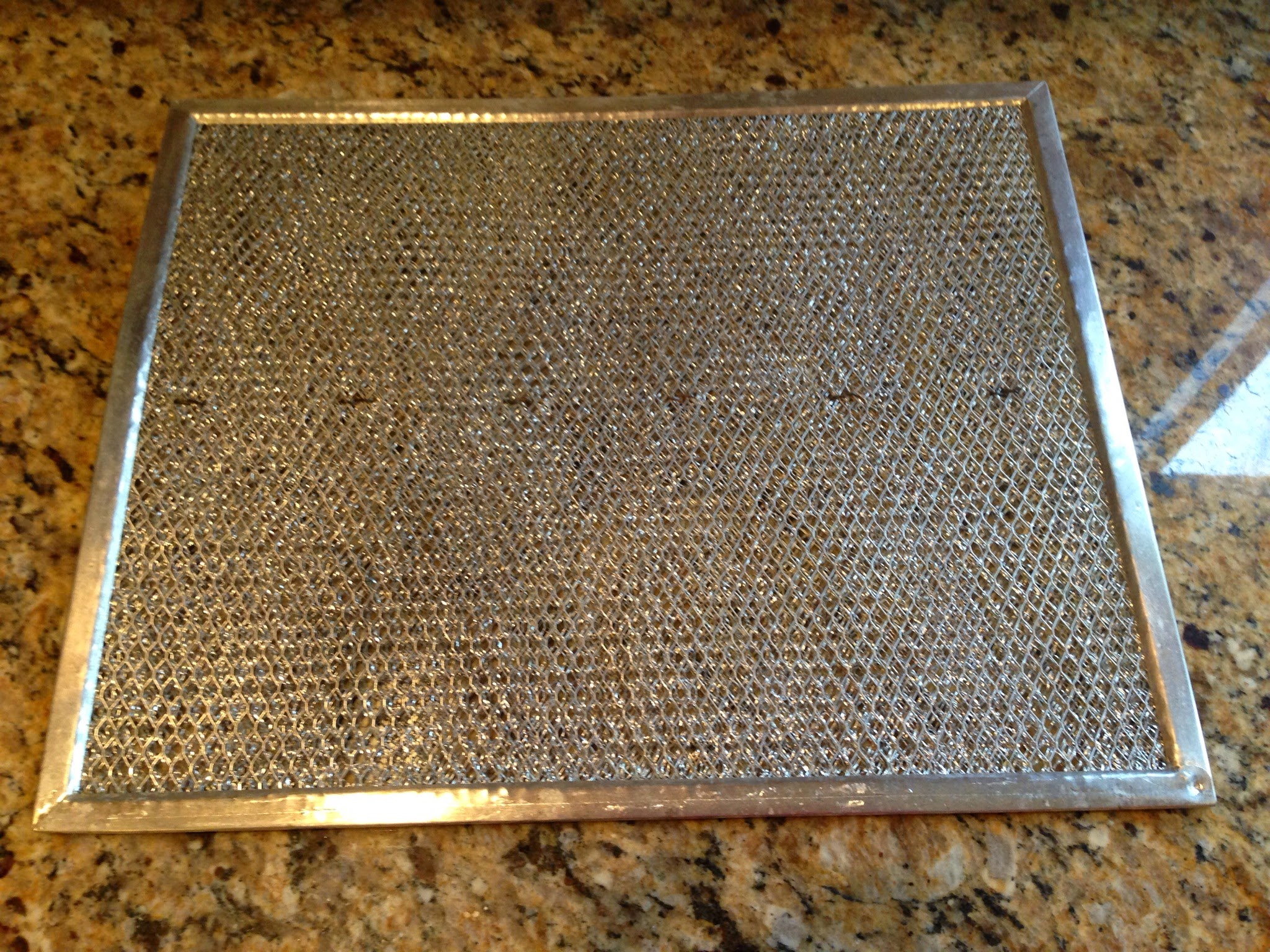After 20 minutes I rinsed the filter off in the sink and let it dry. It looks so much better, almost all the grease is gone, and I didn’t have to scrub at it.