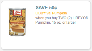 or $.50/1 Libby’s Pumpkin coupon