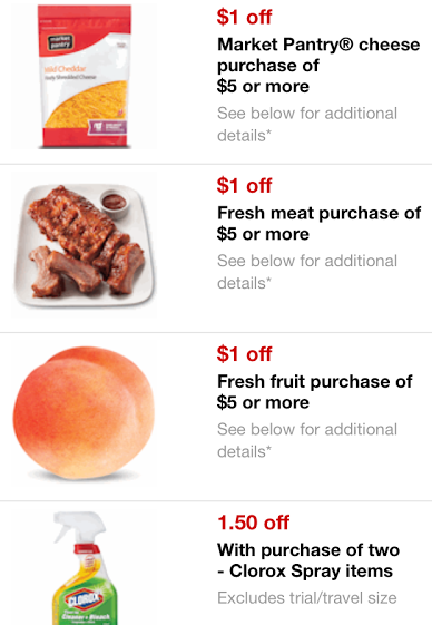 There are some new Target Mobile Coupon that you can get by texting THANKS to 827-438. These coupons are valid now through October 8th. There is a $1 off $5 Vegetable Purchase, $.50/1 Market Pantry Eggs, $1 off $5 Fresh Fruit Purchase and more.