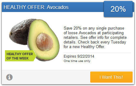 You can get 20% off avocados this week with SavingStar. Just clip the coupon and purchase the Avocados to have 20% deposited in your SavingStar account. Please keep in mind these are loose avocados only. Offer is valid at any store that accepts Savingstar. Expires 9/22/2014. If you haven’t signed up for SavingStar yet you can do so here. New to SavingStar? Check out my how to save money with SavingStar.