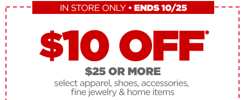 There is a new $10 off $25 JCPenney Coupon that you can print. This is valid in store only, now through October 25th. Head on over here to print.