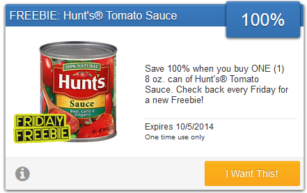 This weekend you can get a free Hunt’s Tomato Sauce from Savingstar.