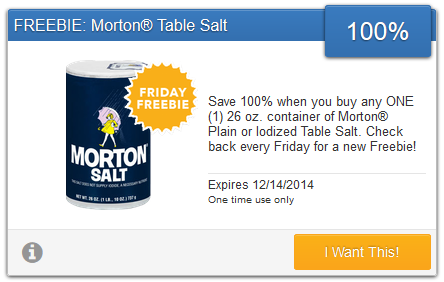 This weekend you can get free Morton Salt from Savingstar.