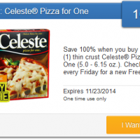 This weekend you can get free Celeste Pizza from Savingstar. If you are headed out to CVS, Kroger or Meijer just put it on your list. Coupon is valid now through 11/23 at stores that accept SavingStar. … Read More...